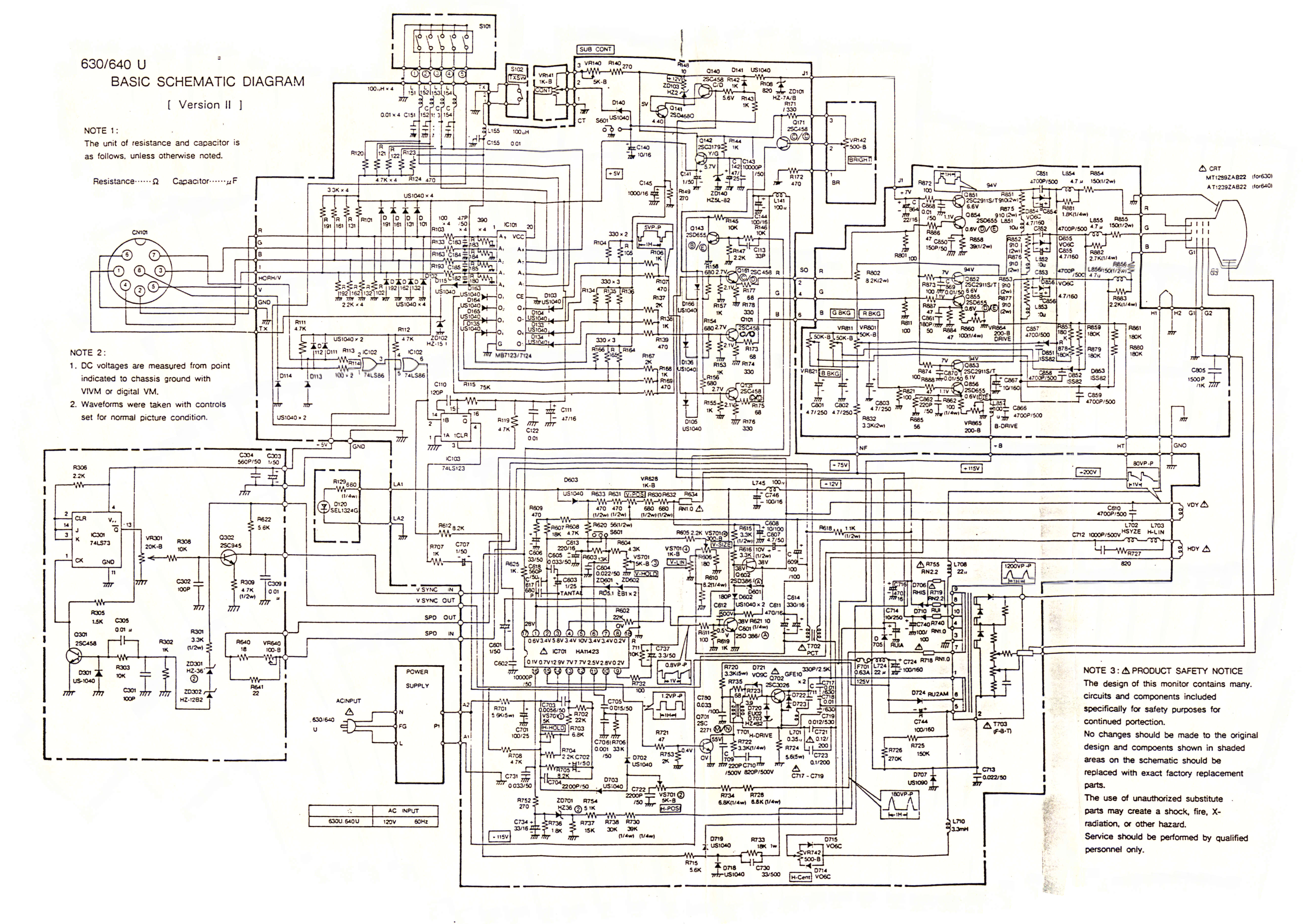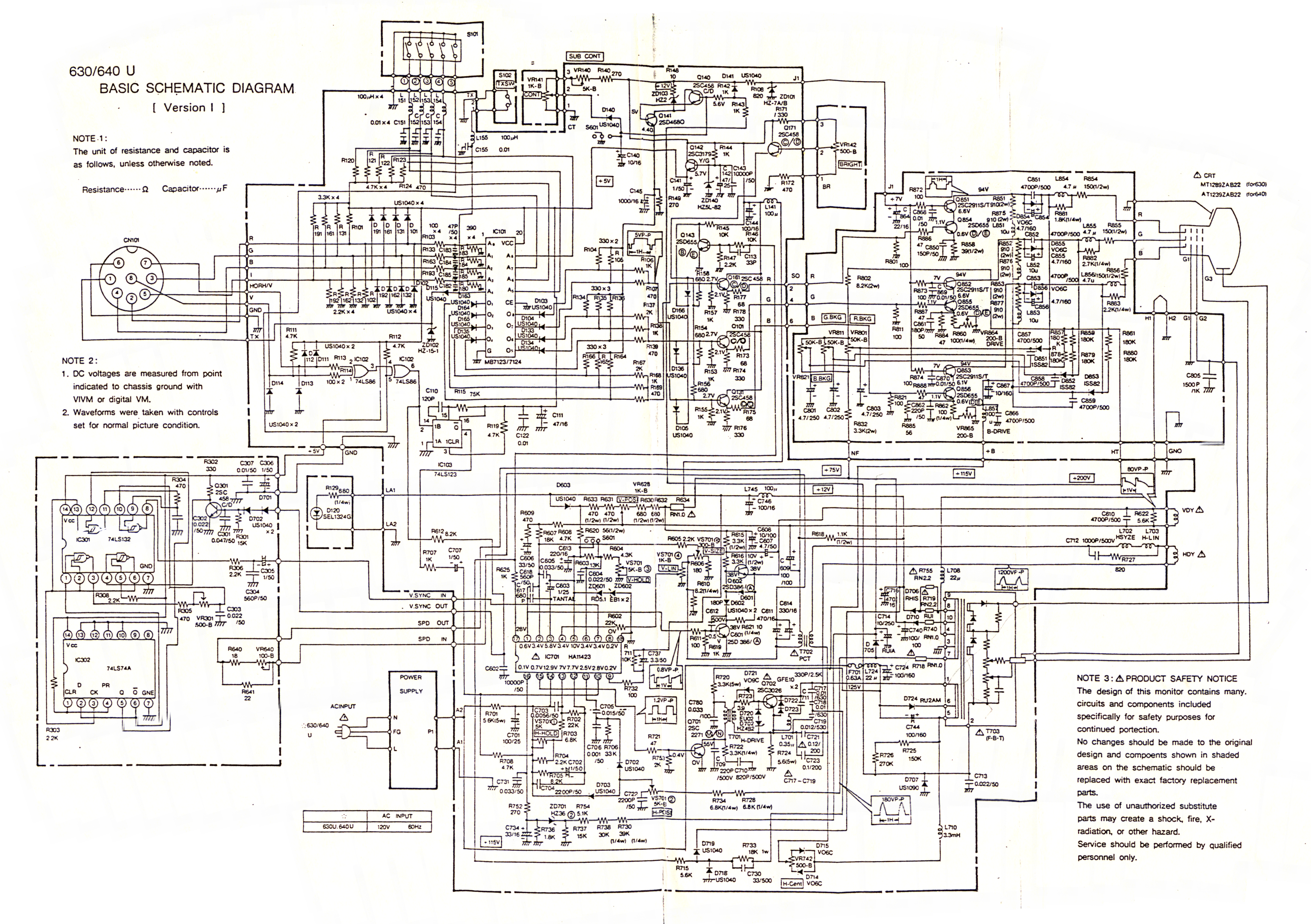 630U and 640U - Schematic diagram - Version I (Service manual indicates 'interlacing control'.)
