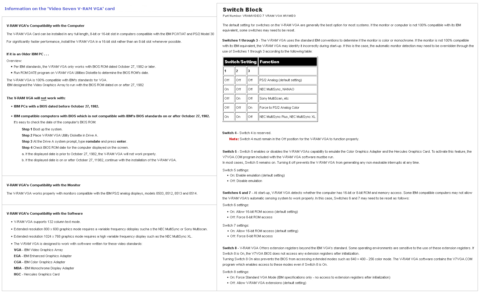 EV-158A v2.0 - RAM 10000 Deluxe - Switch/Jumper Settings (16-bit RAM card) (up to 10 MB RAM) (the "v2.0" suggests the second version of the card)