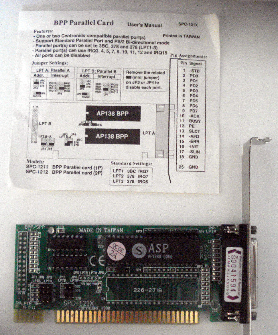 The Kentech multi-function card labelled as "AT MULTI I/O PLUS CARD", appears to be documented at