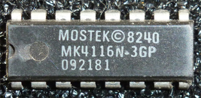 | Mostek | MK4116N-44 | ? | photo | Photo of chip on a '16KB-64KB' type of 5150 motherboard. | ||||