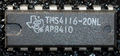 | Texas Instruments | TMS4116-20 | 200 ns | photo | 4116 list 1 | datasheet | |||