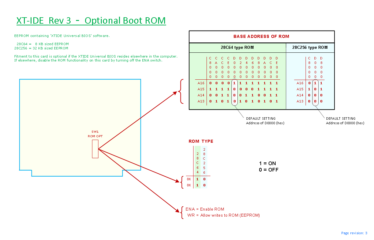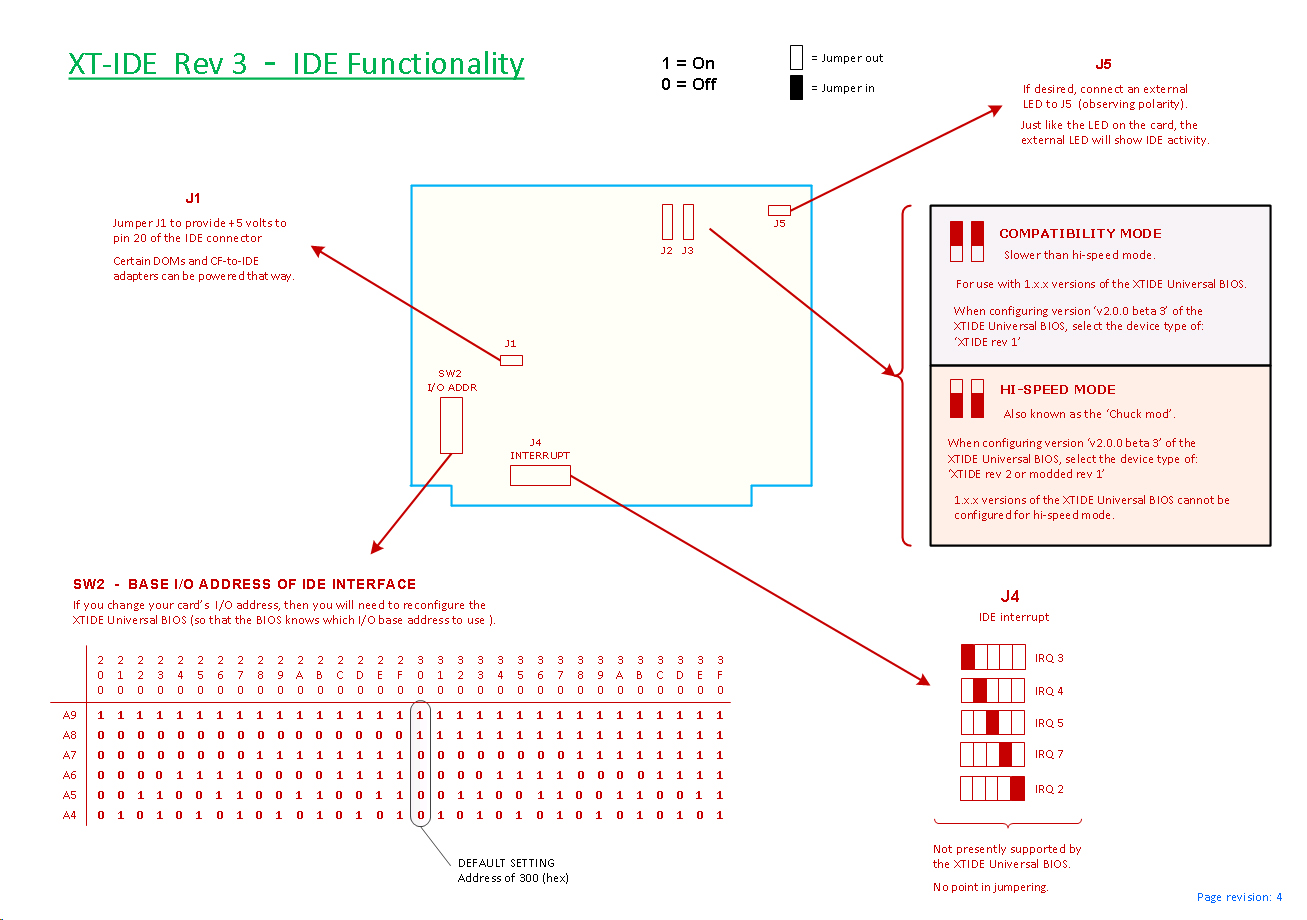Just like with the XT-IDE Rev 2 card, it is expected (only for performance reasons) that the Rev 3 card be jumpered for hi-speed mode, and using a 2.x.x version of the XTIDE Universal BIOS (per option #1 in the table below).