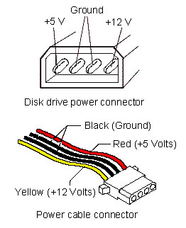 through three 4-pin connectors on the power supply (see Power Supply Connectors).